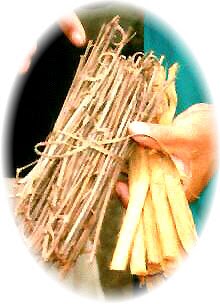 La corteza se extrae cuidadosamente de los tallos cortados por encima de un metro del suelo, para que la planta pueda regenerarse.